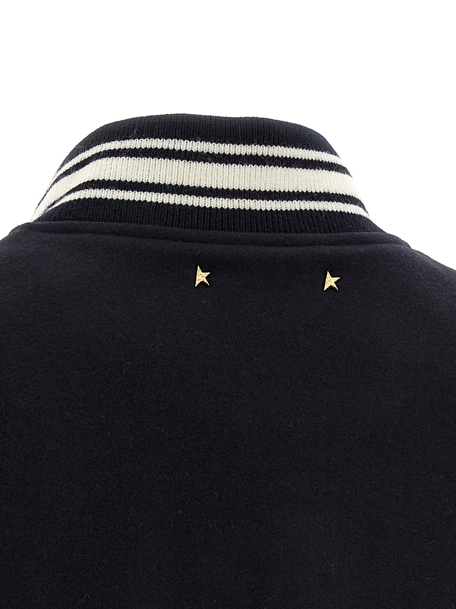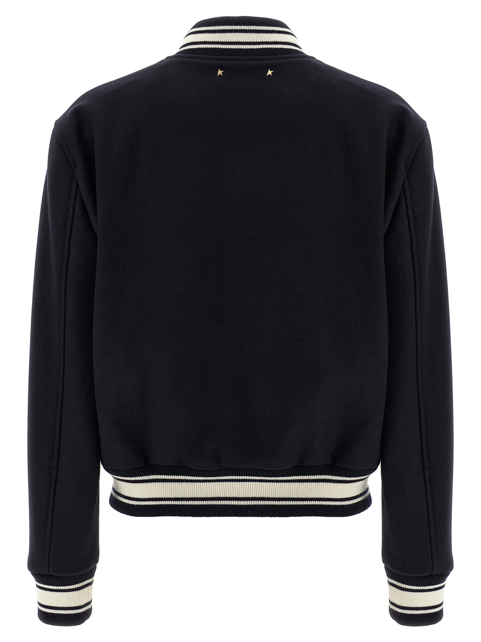 Dirce bomber jacket in virgin wool blend with ribbed knit details, Embroidered logo on the front, Snap button closure at the front, Pockets, Long sleeves with cuffs, Band at the bottom, Metal logo on the back, Lining. Size and Fit - true to size fit