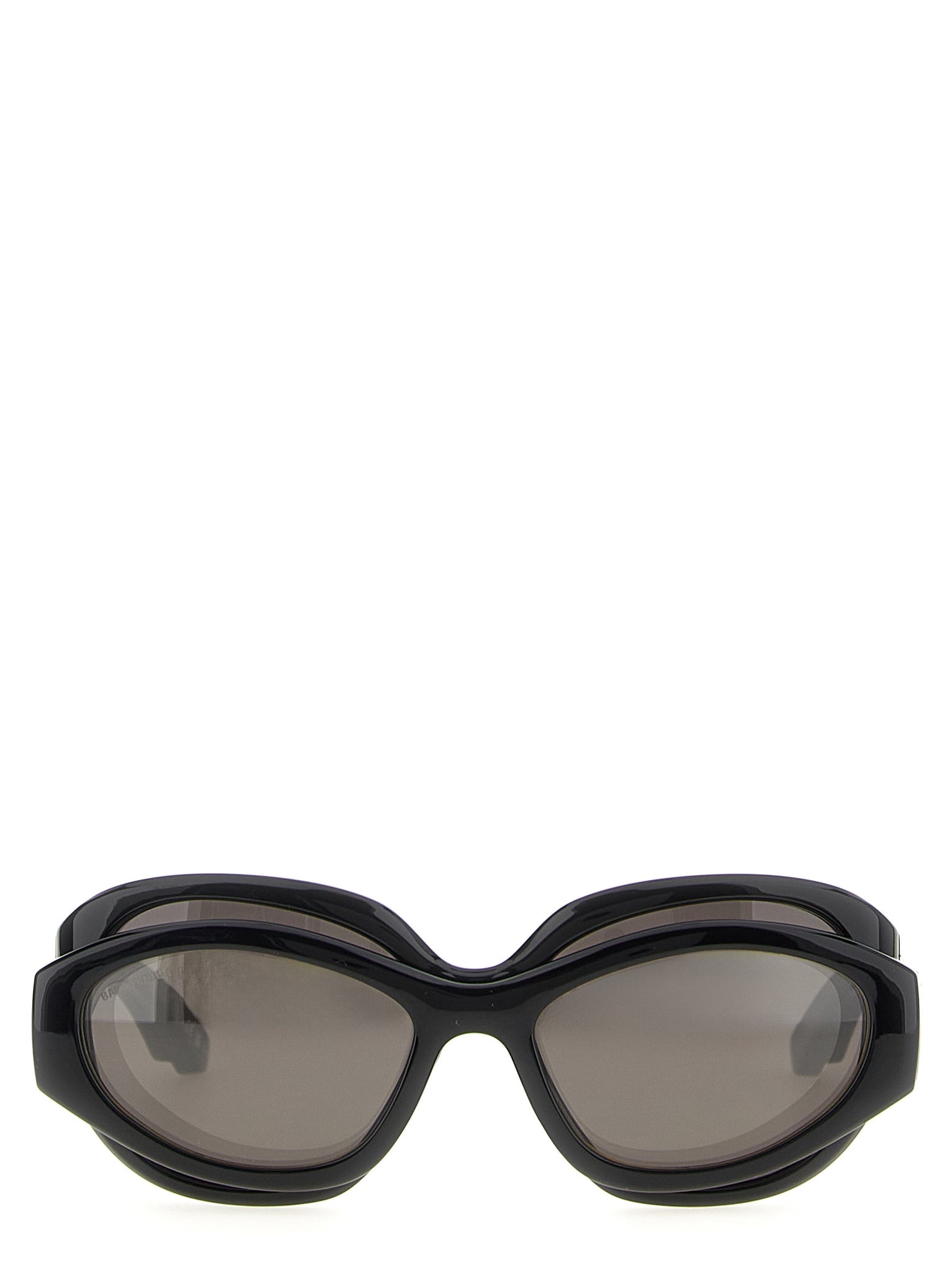'superbusy round' bio-based injected nylon sunglasses, Double overlapping frame, Metal logo plaque on the temples. Size and Fit - TEMPLES: 14,5 cm BRIDGE: 1.8 cm