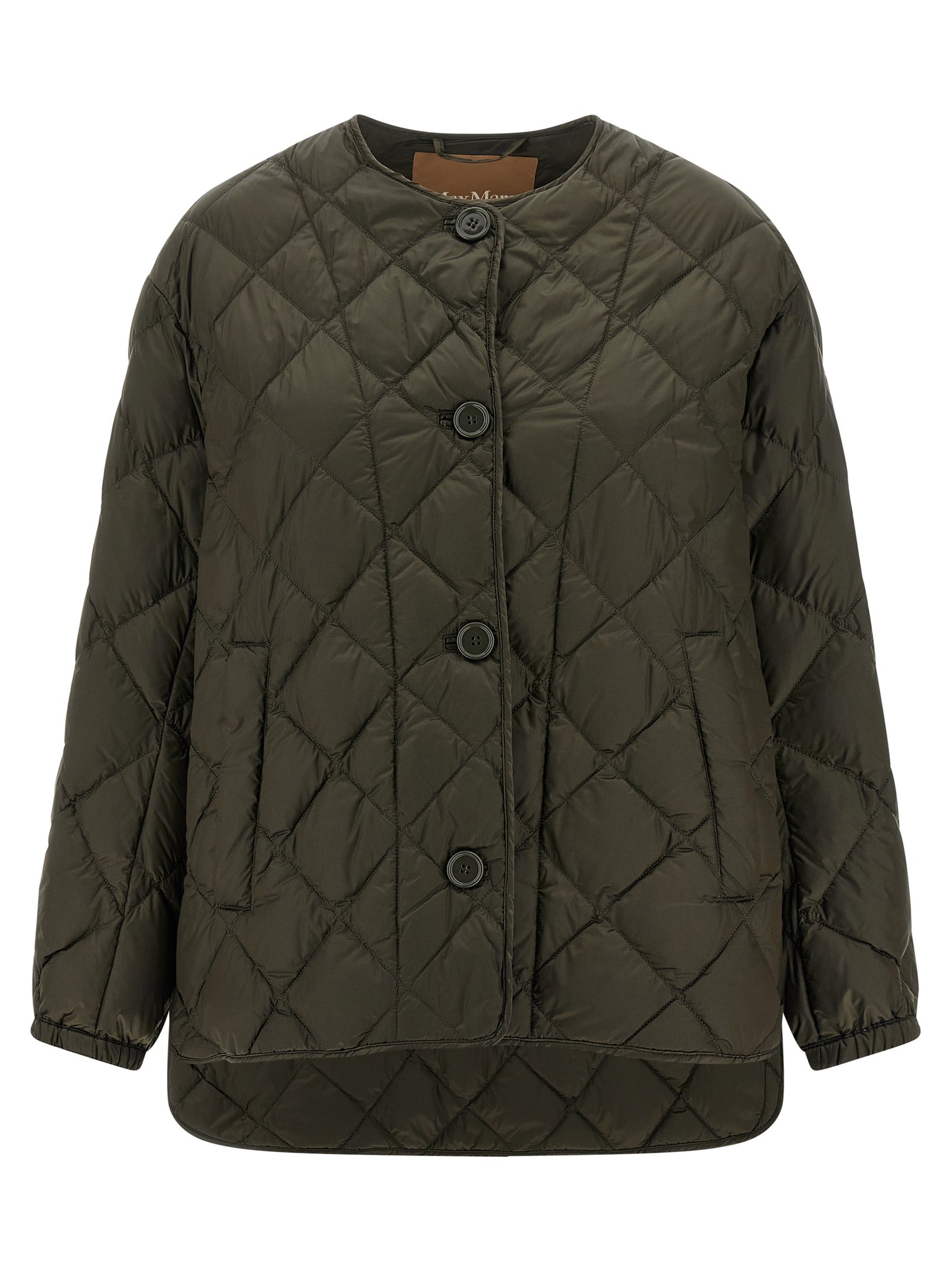 'mtcsoftd' down jacket in iridescent waterproof canvas quilted in diamonds and slightly padded with goose down, Flared silhouette, Crew neck, Front button closure, Pockets, Long sleeves with elastic cuffs and dropped shoulder, Rounded and asymmetrical hem. Size and Fit - true to size fit