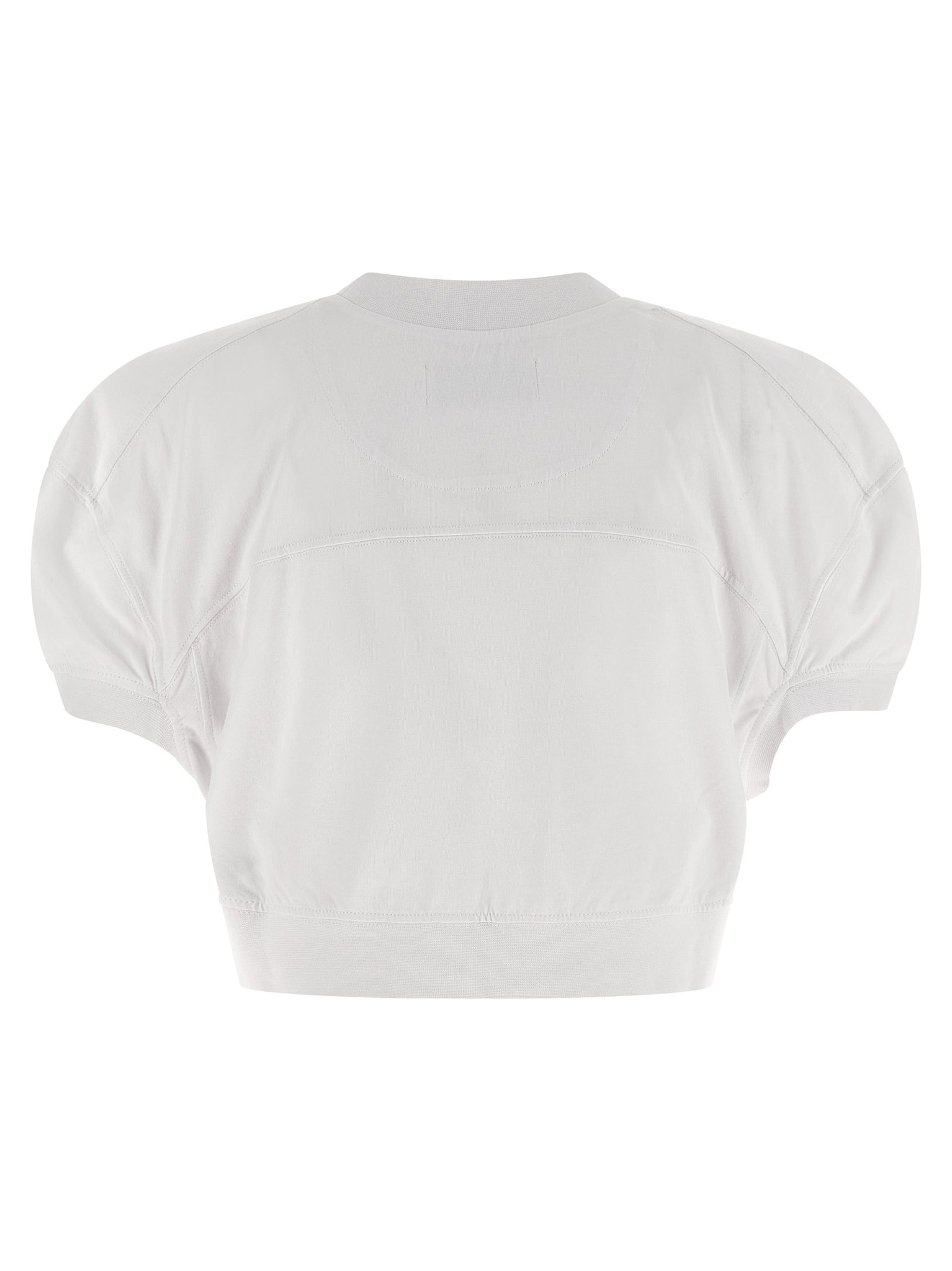 Discover a cropped white cotton tee that balances signature style and everyday wear with an embroidered orb logo that adds refined branding. The crew neck and short sleeves feature rounded construction and cuffs for a clean silhouette, while the phasic hem enhances the fit. This piece fits true to size, offering a confident, wearable profile for casual wardrobes.
